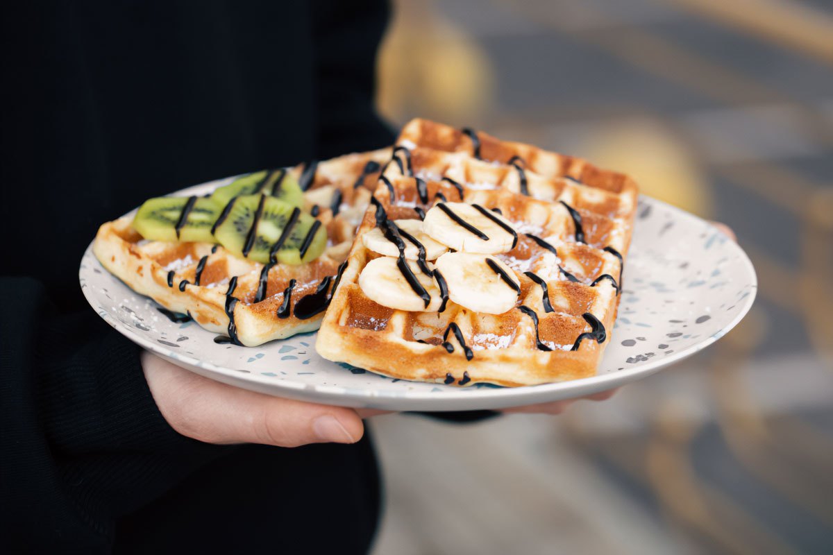 Tip: Před podáváním ohřát talíře pomáhá udržet teplotu vaflí déle a zlepšuje prezentaci dezertu.