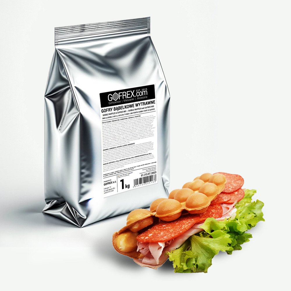Przygotowane z mieszanki gofry charakteryzują się niepowtarzalnym smakiem i delikatnym miąższem. Elastyczna struktura pozwala zwijać je w rożki bez uszkodzeń skórki. Wytrawna receptura sprawia, że gofry bąbelkowe doskonale komponują się z mięsem, warzywami, jajkiem sadzonym oraz innymi sytymi dodatkami. Mogą służyć jako podstawa śniadaniowa, przekąska lub element dania głównego.