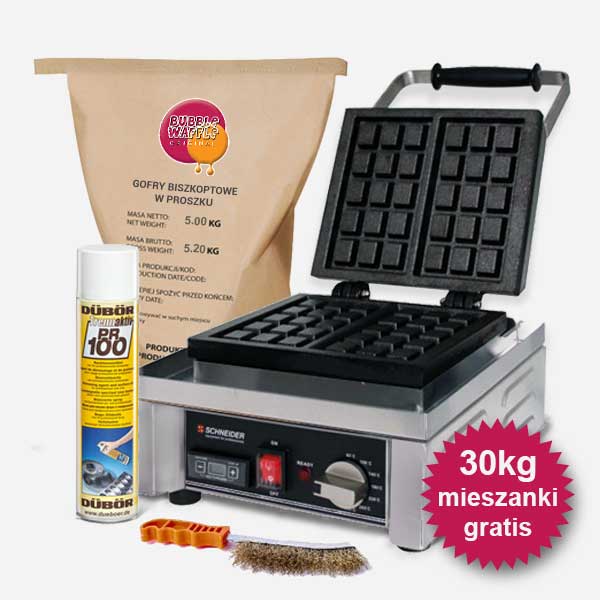 Kitul de pornire Schneider vă va permite să începeți rapid să preparați burete și vafe belgiene pentru clienții dvs. Un aparat de vafe fiabil reprezintă baza pentru prepararea profesională a vafelelor în catering. Aparatul profesional pentru gofre oferit în set de marca germană Schneider este un echipament pentru mulți ani. Forma și greutatea precis selectată a formelor de coacere și a încălzitoarelor garantează o distribuție optimă a temperaturii.