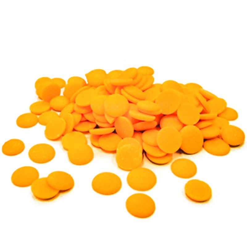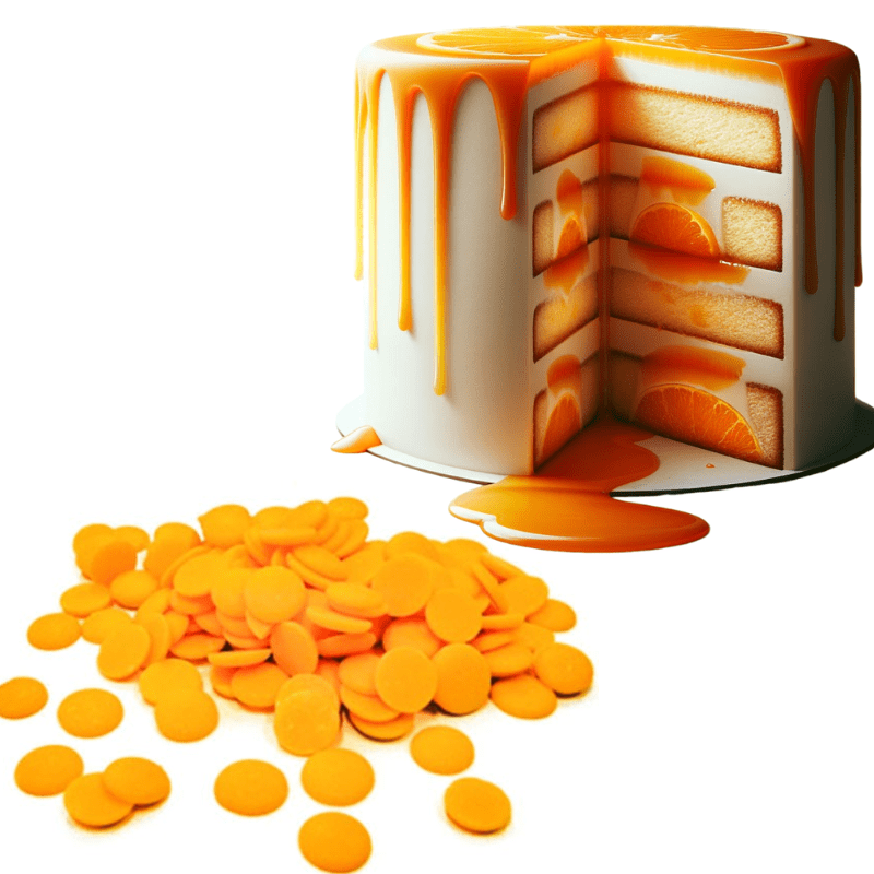 Poleva na cesto, torty s príchuťou pomaranča 150g disky prírodných farbív a aróm. Vysokokvalitný výrobok s výbornou tekutosťou, výrobok neobsahuje hydrogenované tuky. Ideálny na zdobenie, polevu, pridávanie do tort, krémov, ganache, ako plastická čokoláda. Teplota topenia 45 °C.