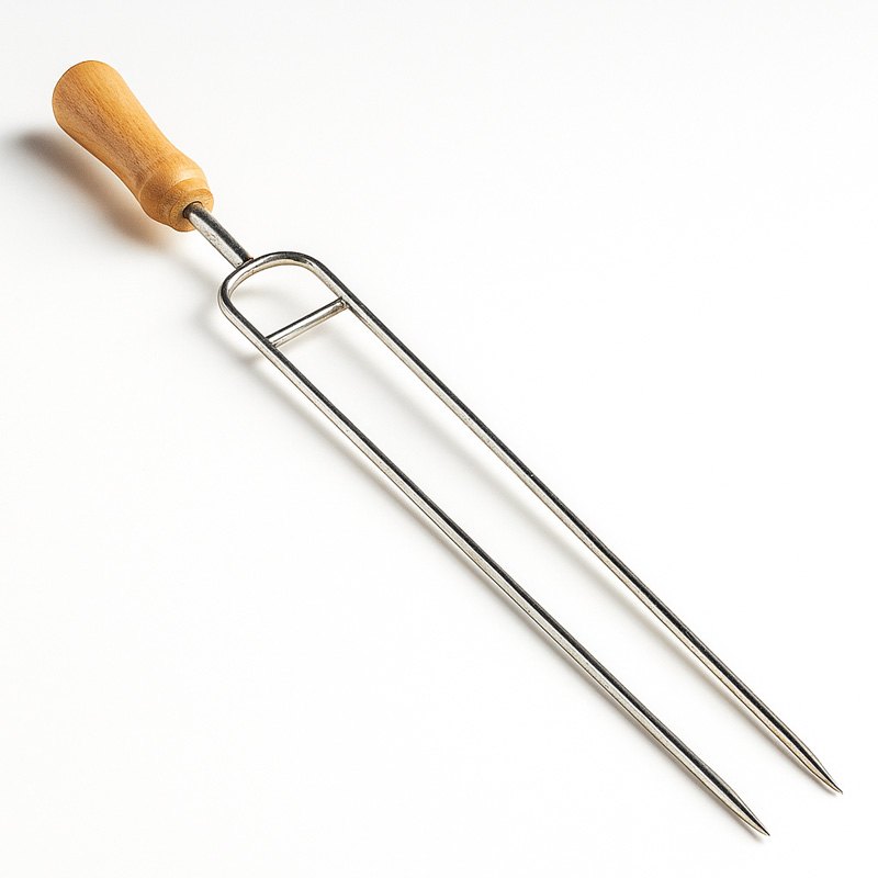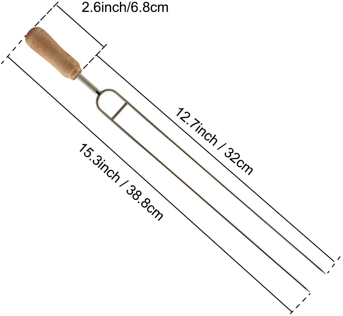 Знімати вафлі з чавунних вафельниць ще ніколи не було так легко. Виделка для зняття вафель дозволить вам значно прискорити процес приготування вафель. Просто проткніть обидві вафлі одночасно і підніміть їх. Немає нічого простішого! Шпажки виготовлені з товстого гнучкого дроту робочою довжиною 32 см. Використання виделки для зняття вафель – чудова ідея, особливо якщо вафлі прилипають до пластин.